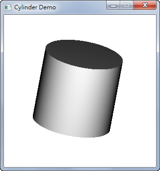 範例示範以setDrawMode()方法設定以填滿的方式繪製圓柱體: