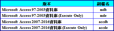 Microsoft Power BI Desktop支援以下之Microsoft Access版本: